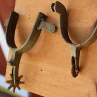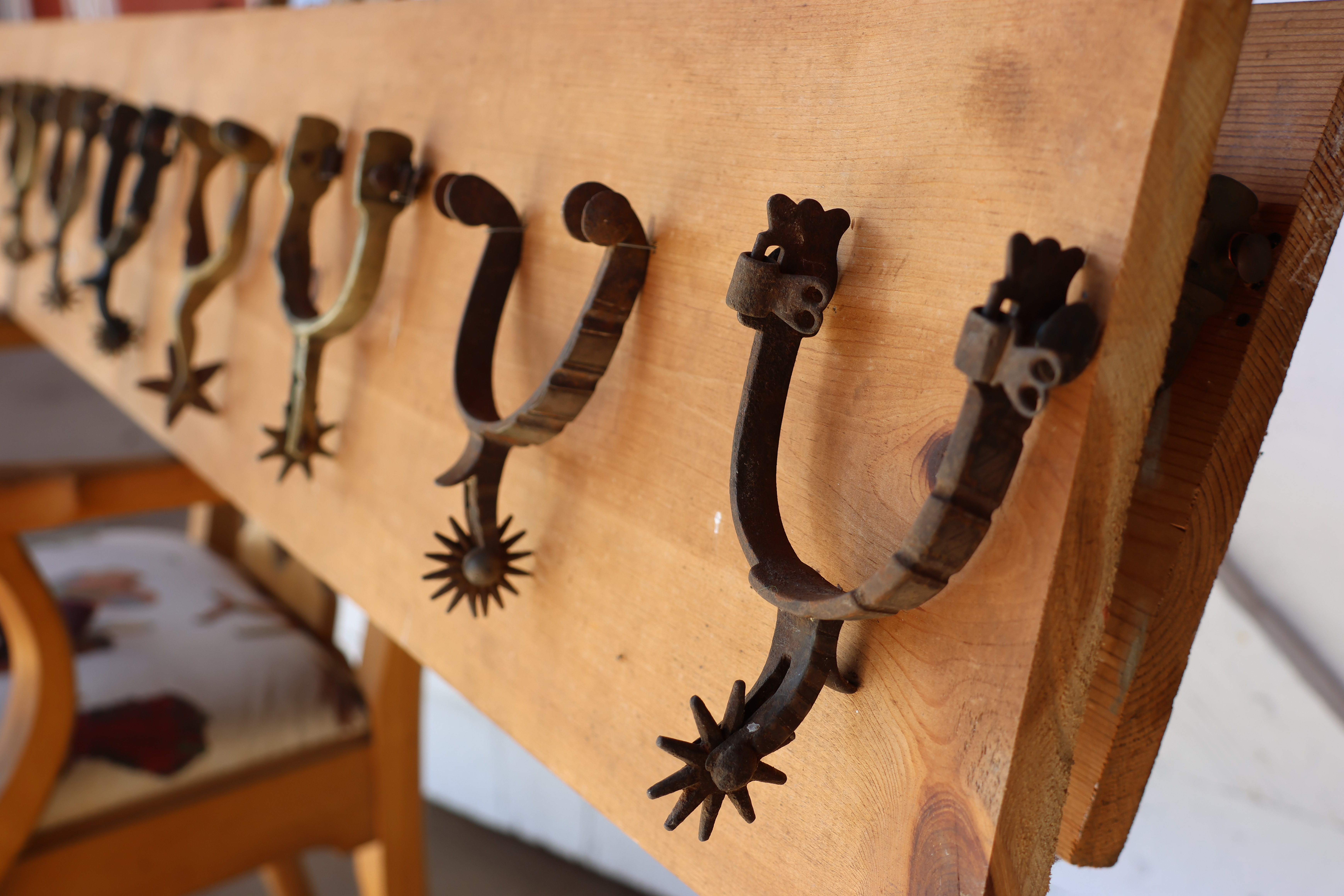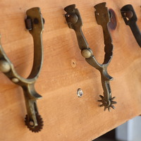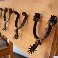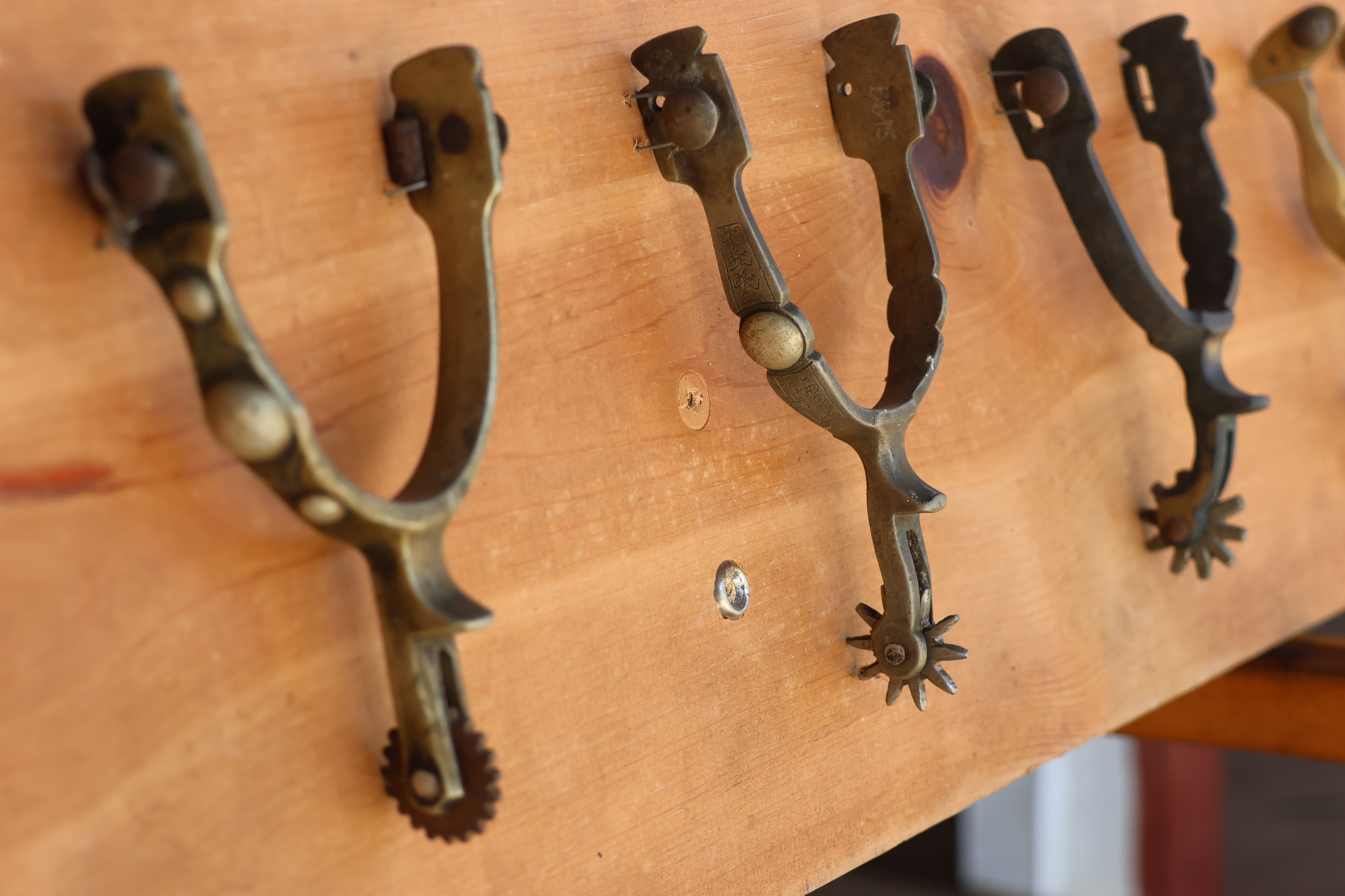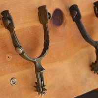 11 Spurs mounted on panel.